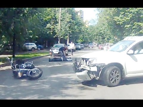 Описание аварии: Авария с мотоциклистом в Котельниках 06 07 2016 мкрн. Белая Дача, выезд к ТЦ «Мега», мотоциклист пытался объехать затор по границе встречной полосы, однако был сбит водителем кроссовера, который совершал встраивание в поток.